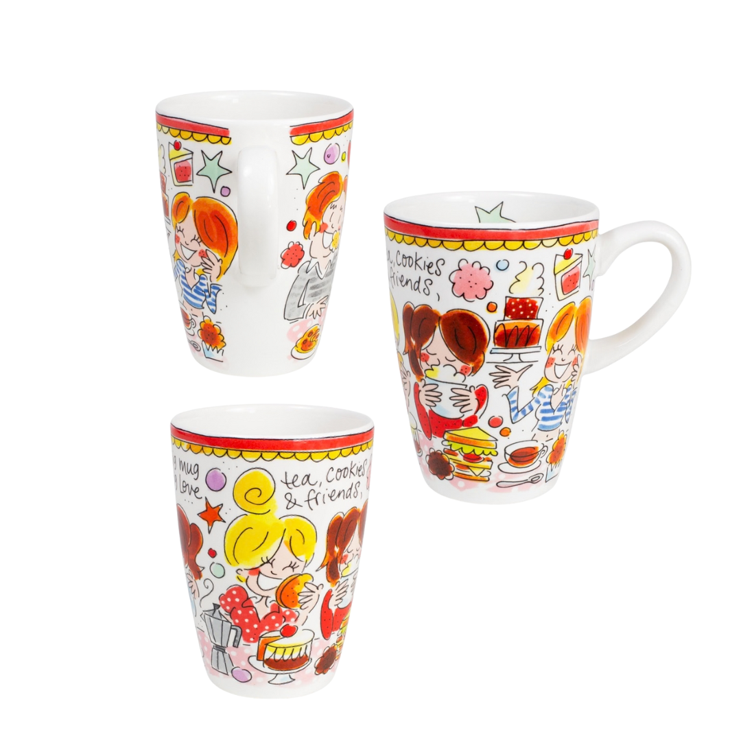 Deze XL beker met ronde onderkant is voorzien van de herkenbare, vrolijke illustraties van Blond Amsterdam en afgewerkt met een rode rand. Op de beker staan gezellige teksten zoals “Big mug, big love” en “Tea, cookies & friends” – precies wat je nodig hebt voor een fijn moment voor jezelf of een gezellige theepauze met vrienden.