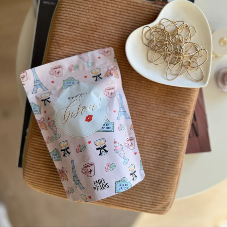 Maak je kijkavond van Emily in Paris extra zoet met deze Emily in Paris Candy Bag. Deze super schattige snoepzak zit boordevol suikerhartjes, perfect om van te snoepen terwijl je geniet van het nieuwe seizoen van de serie. Life is too sweet to eat boring candy!