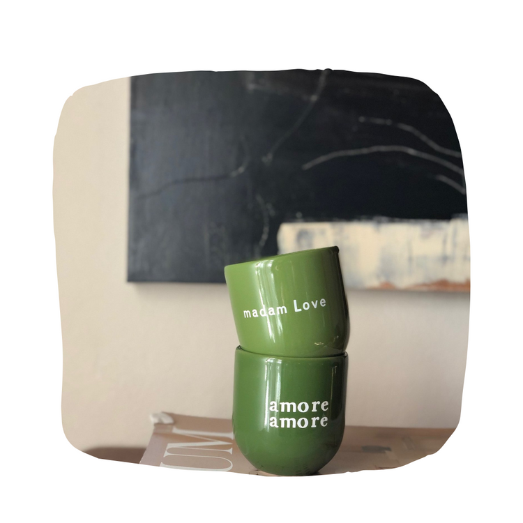 Ein Becher mit glänzender Glasur. Tasse mit schönem Text Madam Love