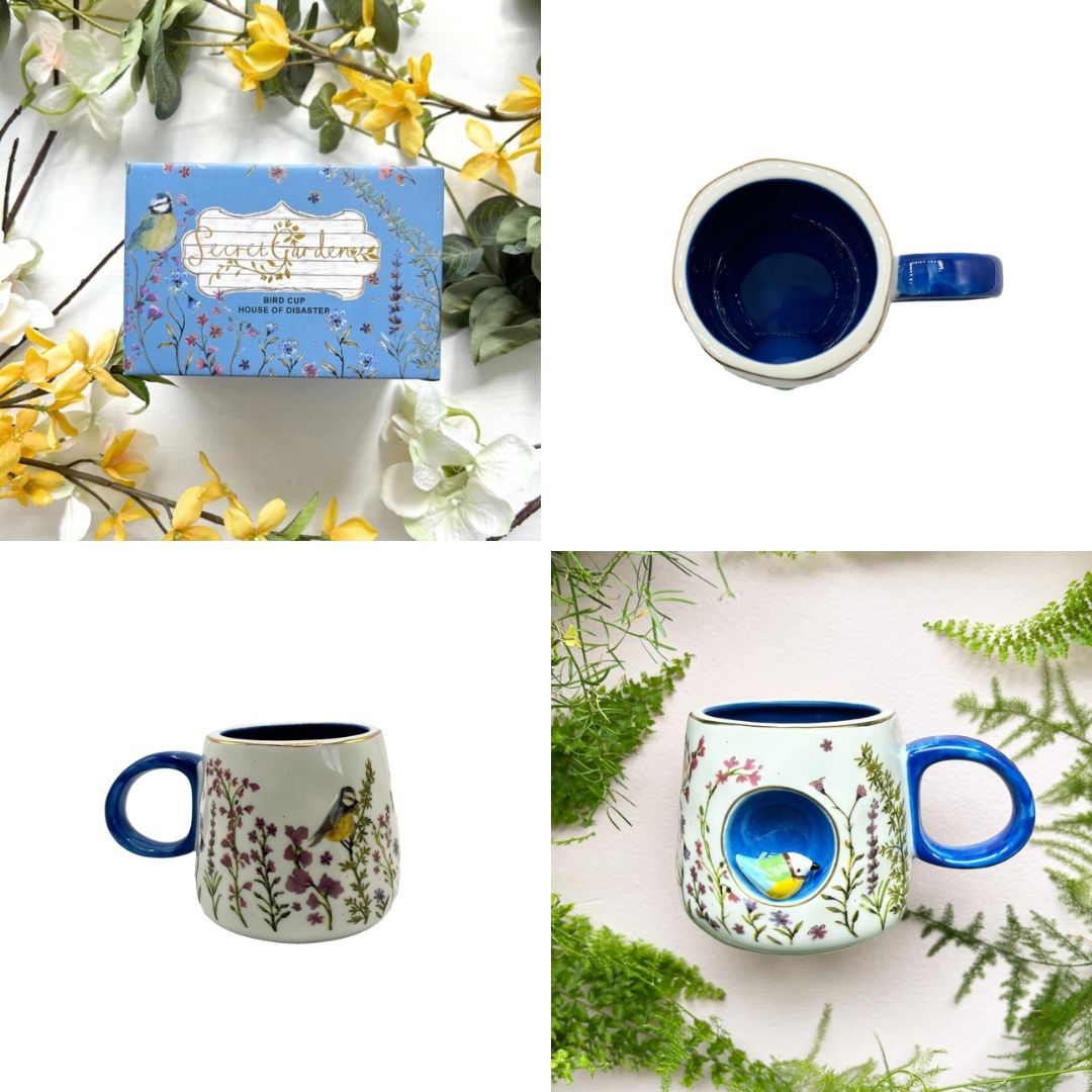 Secret Garden 3D Vogelmok – Charmante Keramische Mok met Bloemenillustratie