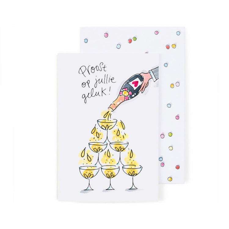 Natuurlijk wordt elke kaart geleverd met een bijpassende vrolijke envelop, zodat je jouw wens stijlvol én compleet kunt versturen. Het herkenbare, handgetekende Blond Amsterdam-design zorgt direct voor een lach op het gezicht van de ontvanger.